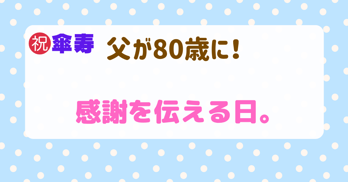 父の傘寿(80歳)のお祝い 「親が今生きているって、当たり前ではない」 2025年の春、私の父は80歳の誕生日を迎えました。 その時の私の思いをブログにしましたので よかったら読んでみてください。 親 ...